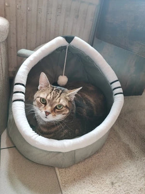 Your cat will adore the snug feeling of this semi-enclosed bed, which mimics their natural hiding instincts. It offers a secure space where they can relax, feel safe, and drift into a deep, restful sleep, enhancing their overall well-being.